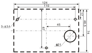 2、只需在柜門上開三個安裝孔(3-Φ3.4)和一個信號線插件孔Φ21;