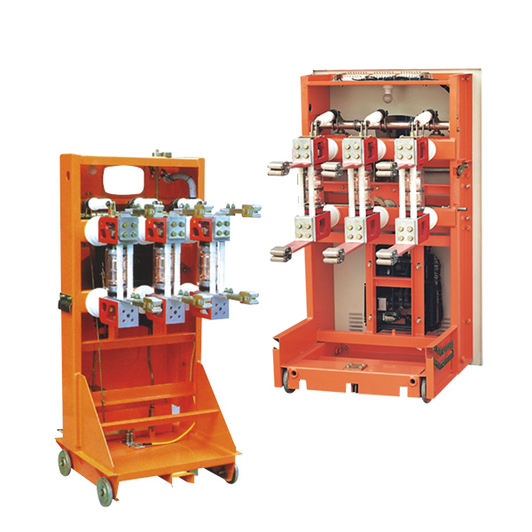 手車是開關(guān)的核心部件之一,用鋼板彎制焊接而成,底部裝有四只滾輪,能沿水平方向移動,還裝有接地觸頭、導(dǎo)向裝置、鎖定機構(gòu)及手車進出手搖機械裝置。